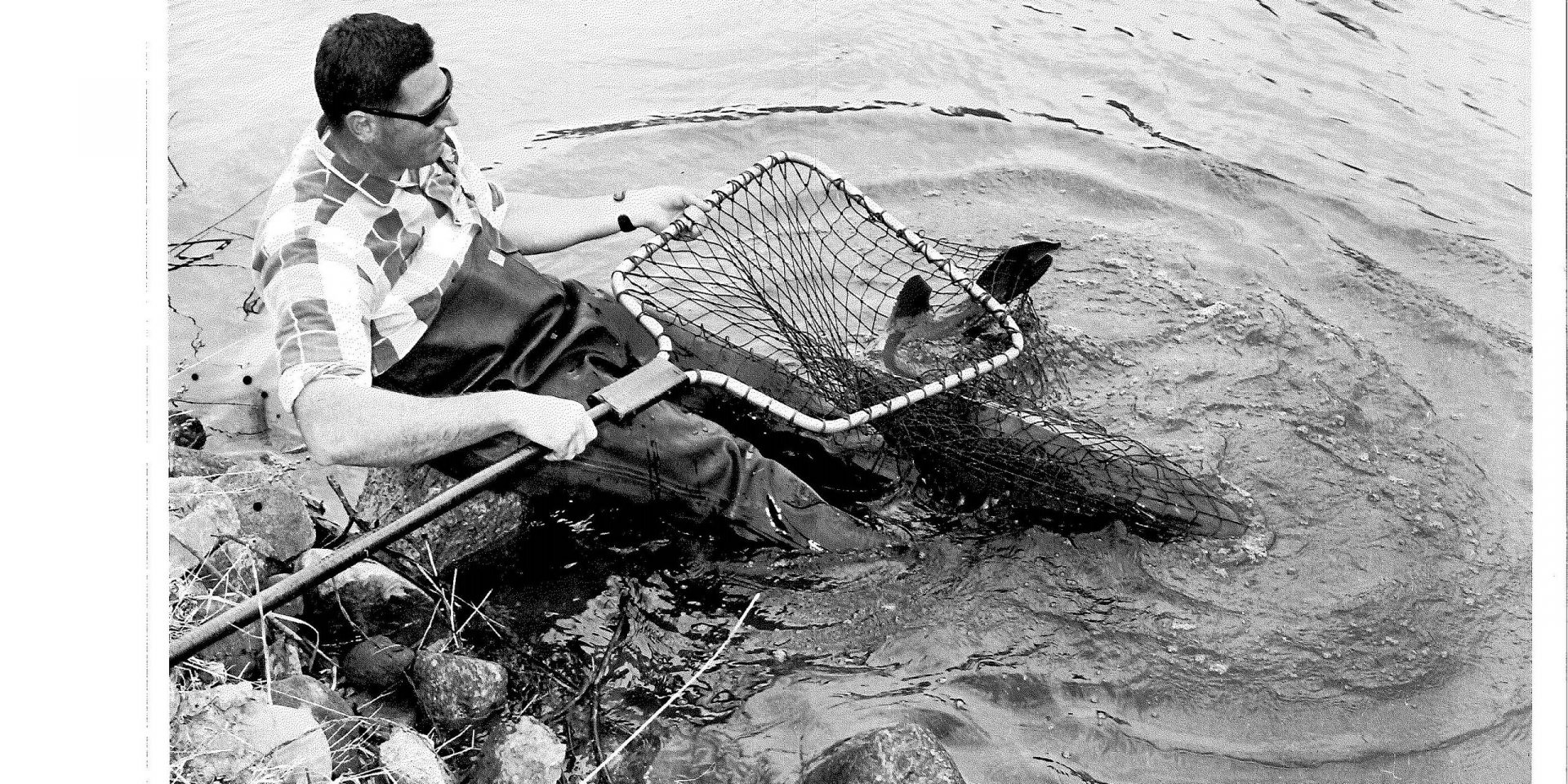 As a young new biologist back in the late 1950s, Dan began tagging sturgeon during the spring spawning runs on the Wolf River and he continued to work on the tagging crews even after his retirement in 1989. For over 60 years, the public, fascinated by watching the annual lake sturgeon spawning ritual at sites along the Wolf River, got to watch Father Sturgeon and his crew net, wrestle, measure and tag these giant fish. Throughout the entire process, Dan could be observed gleefully engaging people lined up to watch the spectacle. One of his favorite things during this time was to have the children come close and touch a fish. Afterwards, Dan would tell the child, while they were horrifically looking at the slime on their hands, “now you can go wipe that on your mother”.